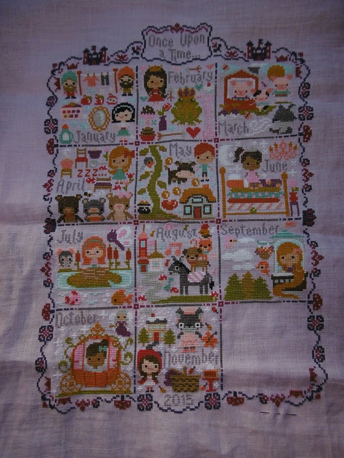 Ya esta casi!!!!!!, solo falta un mes y terminado, esta vez me dio tiempo de sobra a terminarlo pero es que es Caperucita!!!!!, lo cogí con tantas ganas que termine el recuadro...Dude a la hora de poner la fecha, estamos en 2016 pero casi todo el sal lo he hecho en 2015....al final me decidí por poner 2015, este año voy a comenzar otro...... este tendrá fecha de 2016!!!!