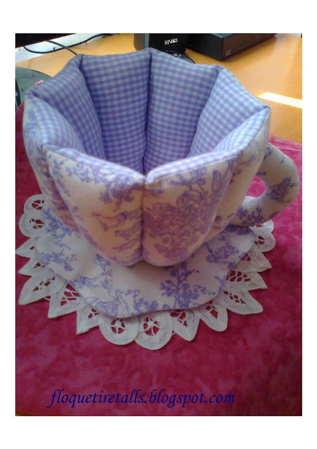 Hola amigas, hoy os presento mi taza ,que he confeccionado con el estupendo PAP que nos ha detallado mi amiga Noemi en el post de Facílismo , la galería para visitar las preciosas tazas que se han presentado es: http://manualidades.facilisimo.com/foros/costura/galeria-sal-taza_763502_4.html#p12897136, la he hecho en la preciosa tela de Toile de Jouy, dedicada al blog : http://babyintoilejouy.blogspot.com.es/ que le dije que haría una pelota masaje en esa tela, (todo se andará) jejejeje. Un besito, desde mi querida Barcelona.