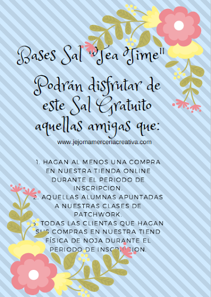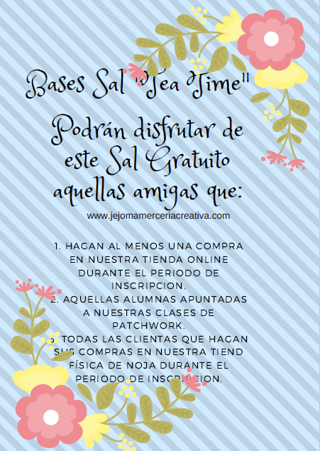 Os dejamos las bases para que os podáis inscribir y la relación de materiales que necesitareis, aunque os hemos dejado un enlace para que podáis comprar el pack de telas que serán necesarios para confeccionar el top de nuestra mantita #teatime.