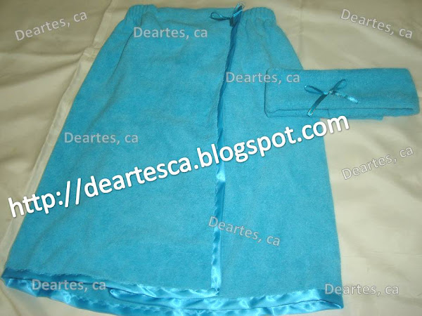 Confeccionado con material de buena calidad, toalla super absorbente, elastizada toda la parte de la espalda para hacerla adaptable al cuerpo, cierre mágico ajustable en la parte delantera y bies la tono por todo el contorno; y el cintillo con cierre mágico ajustable para el cabello.