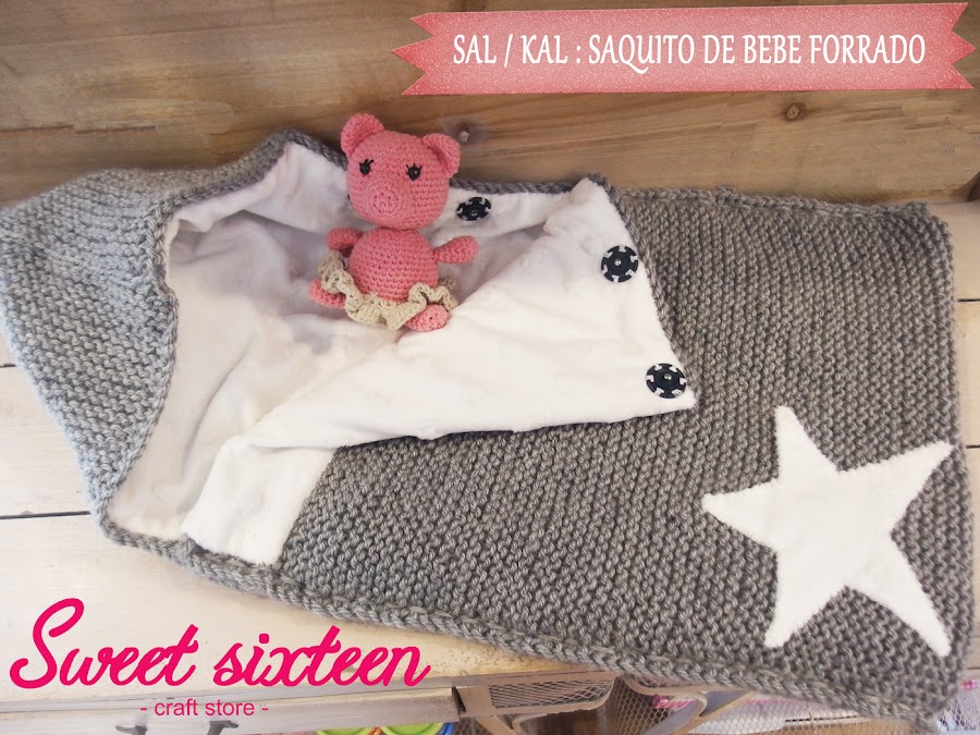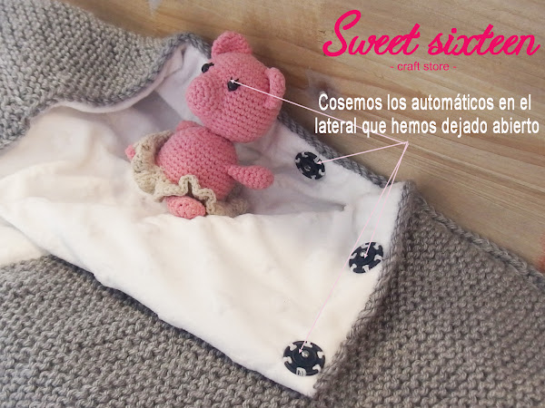 PASO 3: Ya solo nos queda coser los automáticos en el lateral que hemos dejado abierto y tenemos nuestro saco!!!. Como complemento, nosotras hemos entretelado un trocito de minky, lo hemos cortado en forma de estrella y se lo hemos cosido al saco. La entretela es importante porque el minky despelucha mucho, y así nos queda mejor rematado.