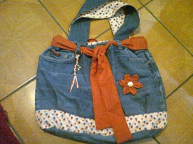 Bolsa de Casitas Aplicadas en lona (pantalón reciclado)