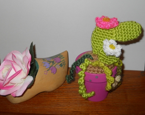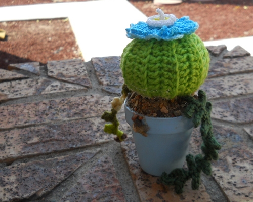 Aprovecho para dejarles unos cactus que teji para unas compañeras como complemento de regalo --sobre todo para cambiar las fotos, es aburrido ver lo mismo las fotos tomadas rápidisimo pues cuando regreso no hay sol.
