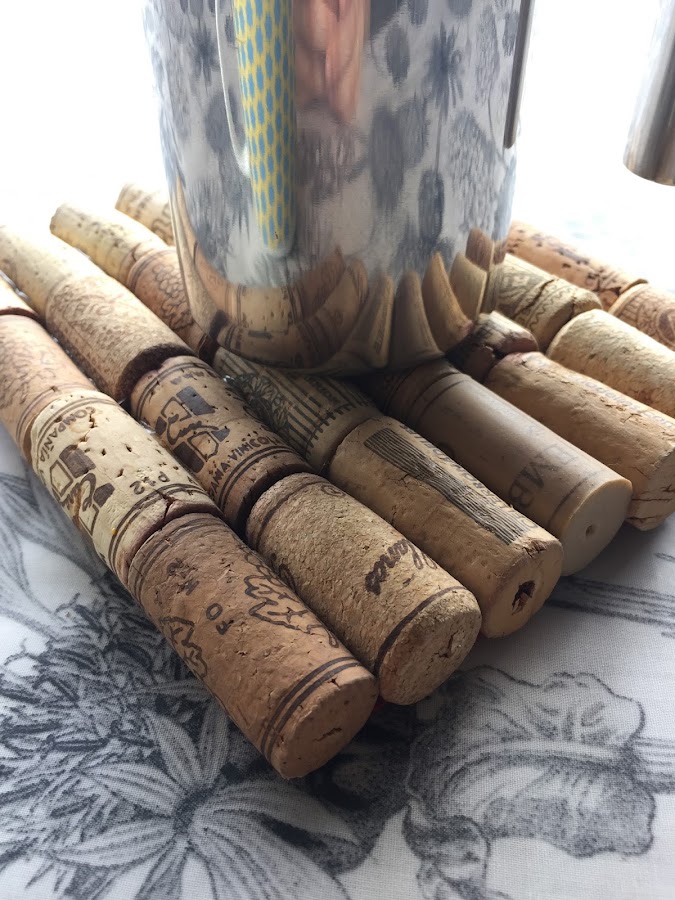 El procedimiento es tan sencillo que no hace falta fotos: simplemente pega los corchos los unos a los otros y sobre un cuadrado de tela un poco recia usando un pegamento fuerte, tipo superglue, ya que tiene que soportar el calor. Déjalo secar al menos un día y ya tendrás listo un salvamanteles de lo más original. Sencillo, ¿verdad? Y una gran excusa para abrir una botellita de vino y disfrutar con los tuyos.