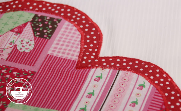 Luego hacemos el posavasos con la forma de corazón que habrás descargado de la web y le aplicamos en la parte posterior un poco de guata. En el vídeo vas a ver lo fácil que resulta.