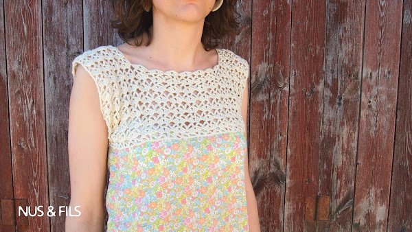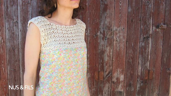 La samarreta de ganxet amb floretes és un dels tallers que fem a La Cantatrice, i molt possiblement serà un futur kit "fes-t"ho tu mateix". Quan la vaig tenir acabada sabia que hauria de buscar un foradet fos com fos perquè era l"excusa ideal per avançar amb la costura.