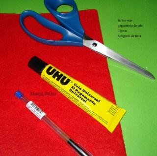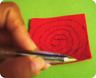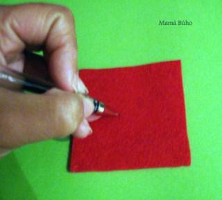 Cortar un trozo de 6cm de fieltro rojo.