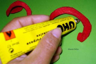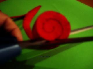 Cogemos el extremo y empezamos a enrollar, poniendo pegamento en la misma línea