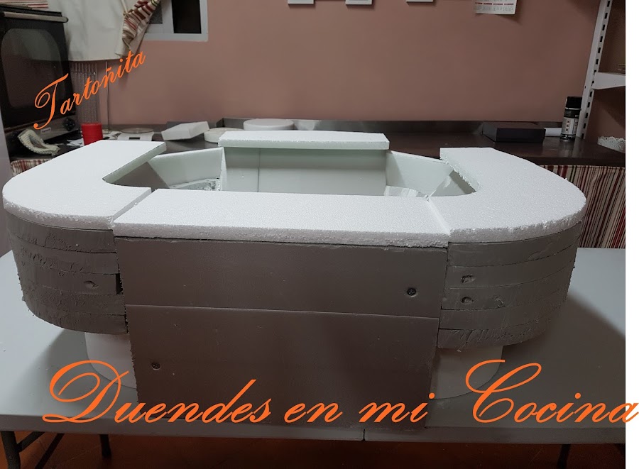 Quizás no es la tarta más grande que hemos hecho, tanto una como la otra, me refiero a Toñi Arrabal y a mí, pero si que es, en volumen la más grande y la que más dificultad y retos por conseguir que hemos tenido.