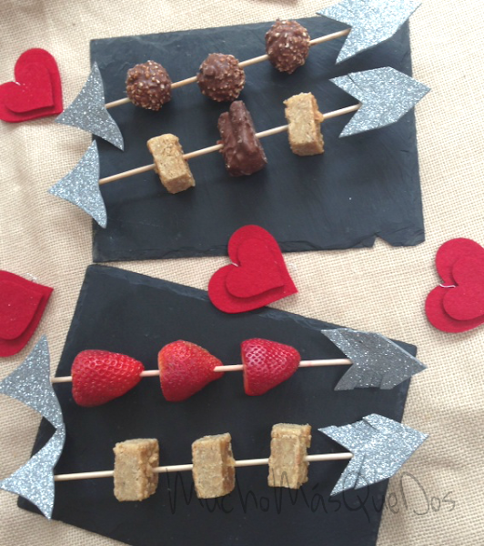 . Delicias dulces: chocolates, brownie, fresas, bombones...¡Ahora sólo queda armar las flechas!