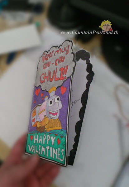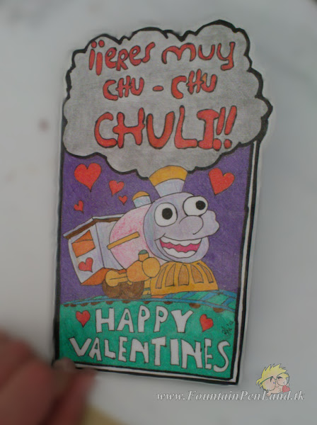 Os presento mi propia tarjeta, aunque en V.O. dice I choo choo choose you, (te esco, esco, escojo traducción literal) la versión traducida en castellano es: Eres muy Chu-Chu Chuli para seguir con lo del tren y tuviera algo de sentido. Como no la encontraba por ningún lado la versión traducida de la tarjeta, la hice a mi modo.