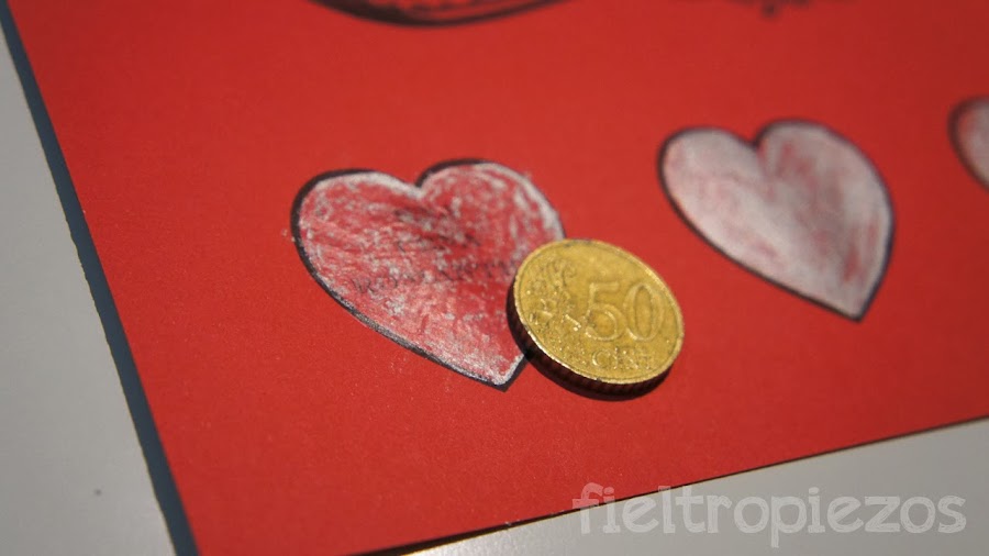 Daremos una capa con plastidecor blanco en nuestros corazones. Esa capa será la protección que la cartulina necesitará para que no se estropee al rascar. Básicamente, digamos que el plastidecor hace de "aislante" entre la cartulina y la pintura.