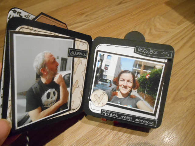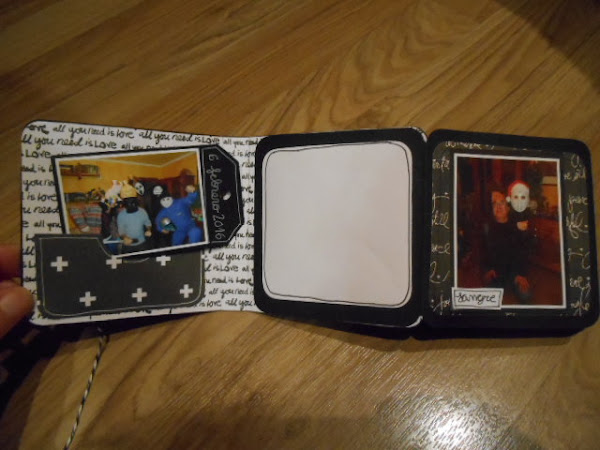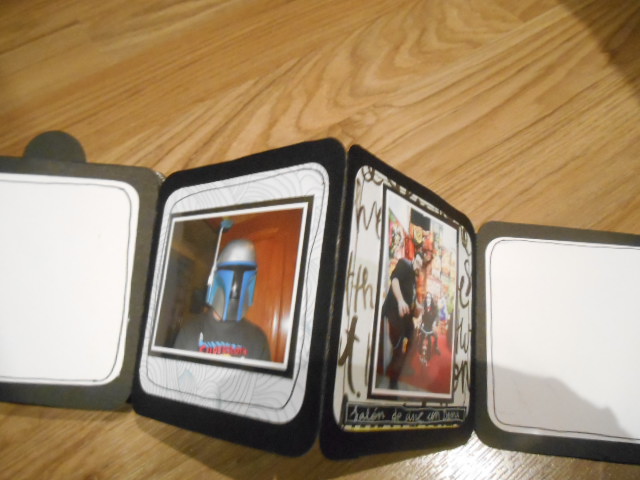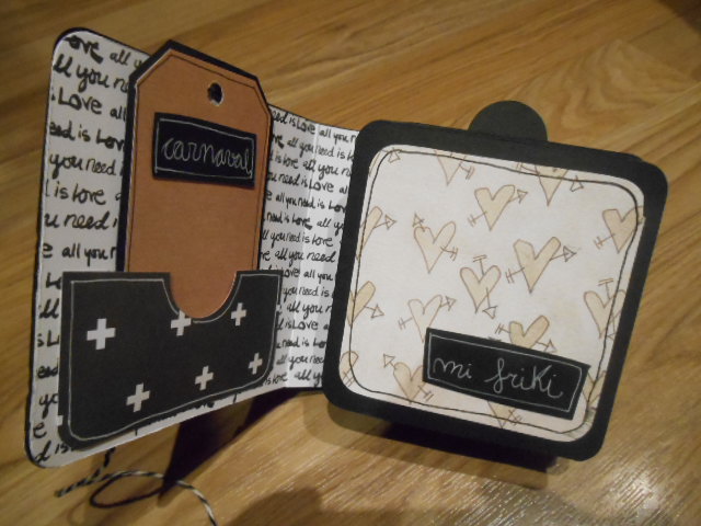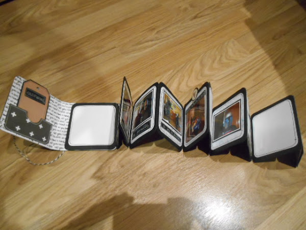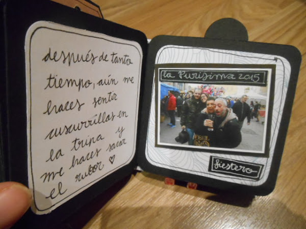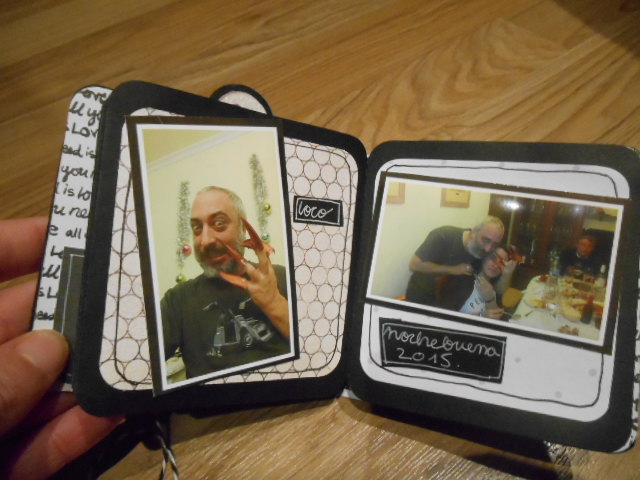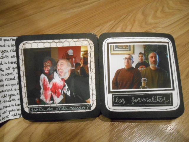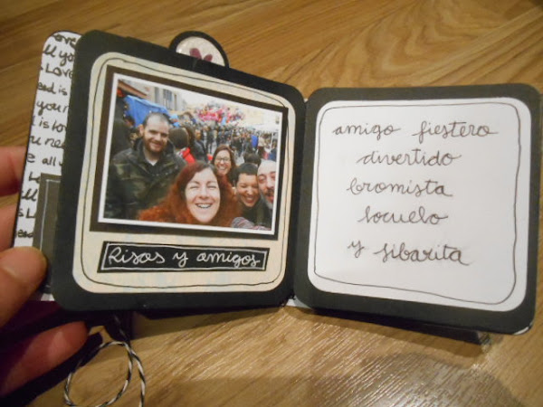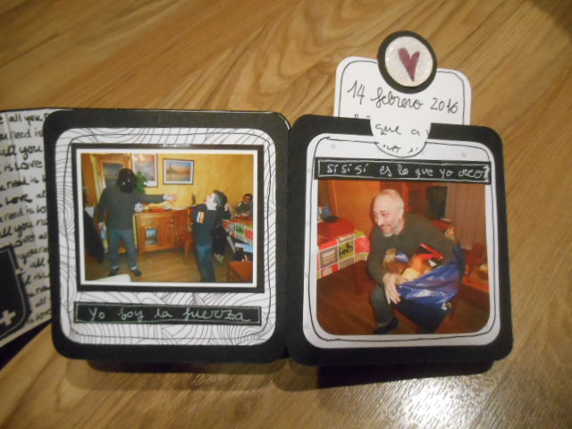 Como se puede ver es un álbum en zig zag donde se pueden poner muchas fotos y comentarios, aún me quedan un par de huecos para poner más fotos, en la parte de unión de las dos tiras de se forma un bolsillo donde he puesto un tag con mis sentimientos.