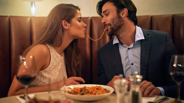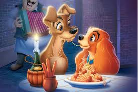 otra famosa película es la dama y el vagabundo donde comparten la cena dandose el primer beso.