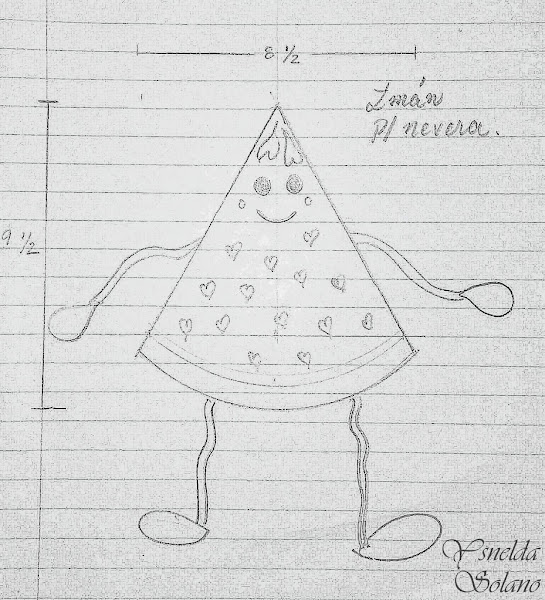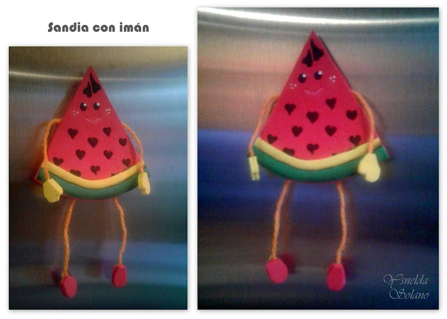 5.- Pegamos el imán, en la parte posterior, para la sandia frigorífico.