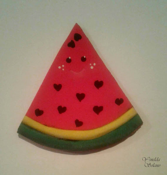 Y con estas lindas sandias me uno a la fiesta artesanal, que este mes organiza el blog: LITLE KIMONO. Reto Amistoso Nro 128. Espero les guste mi aporte, llegando un poco tarde a la fiesta, asi que me voy corriendo de visita, a ver las bellezas que han realizado mis compis del reto, ¿me acompañan? sigue los vínculos.
