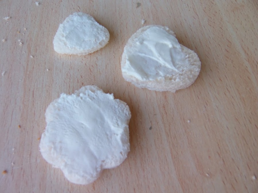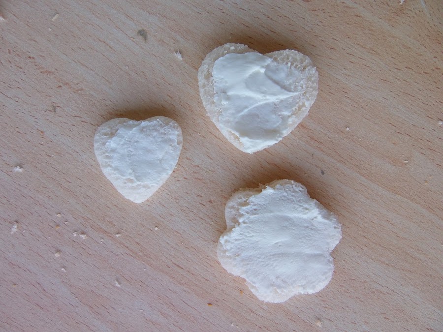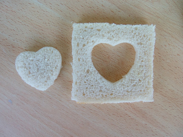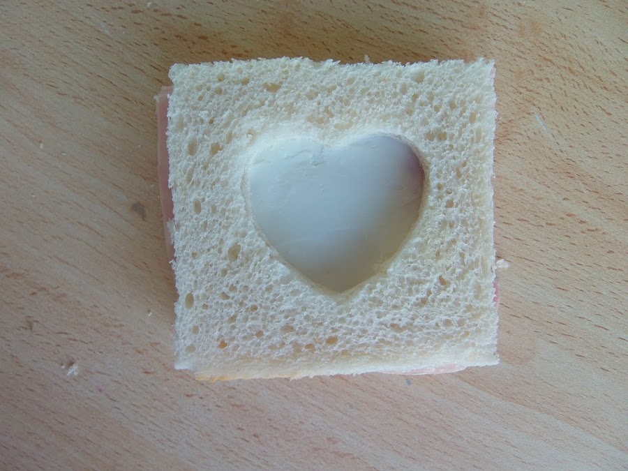Ahora ya es todo imaginación,yo en este he puesto jamon de york y encima queso de untar para que e vea justo por el hueco del corazón.