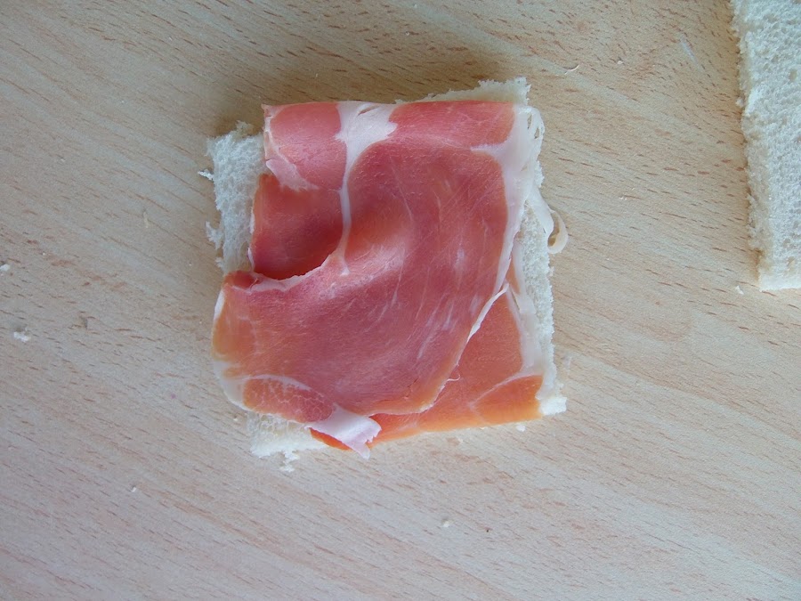 En este otro he seguido el mismo proceso pero con una flor,después he puesto jamón serrano y una loncha de queso.