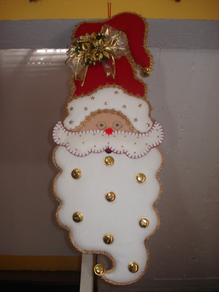Polar, fieltro, galón, hilo dorado, pick y delcrón. Mide 70 cms de alto. Esta pieza requiere de bastante relleno, por lo que pesa y para darle soporte se requiere de una base plana para el cuerpo, ela ...