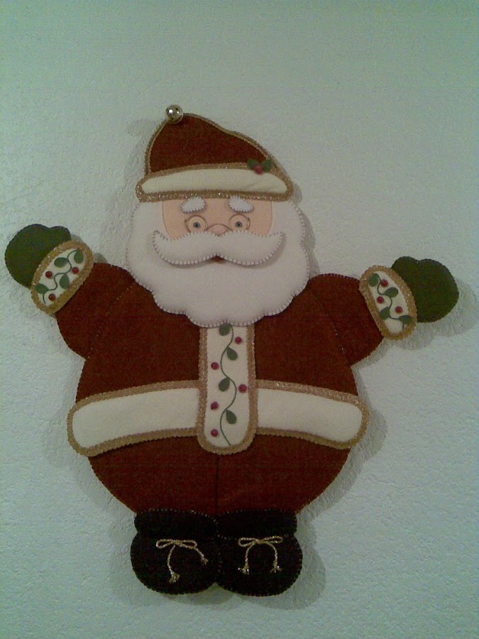 Polar, fieltro, galón, hilo dorado, pick y delcrón. Mide 70 cms de alto. Esta pieza requiere de bastante relleno, por lo que pesa y para darle soporte se requiere de una base plana para el cuerpo, ela ...