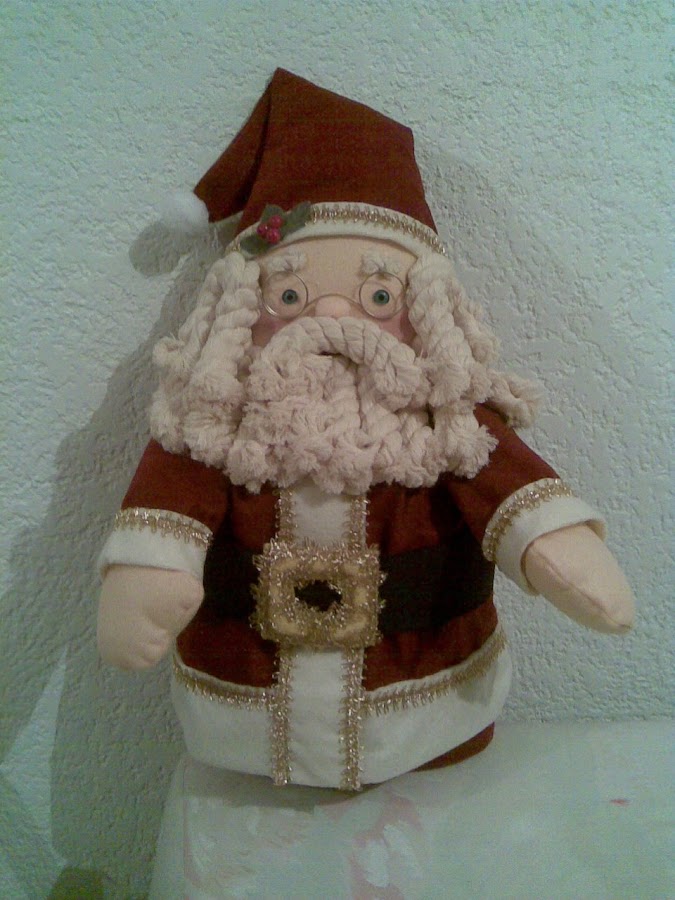 Polar, fieltro, galón, hilo dorado, pick y delcrón. Mide 70 cms de alto. Esta pieza requiere de bastante relleno, por lo que pesa y para darle soporte se requiere de una base plana para el cuerpo, ela ...