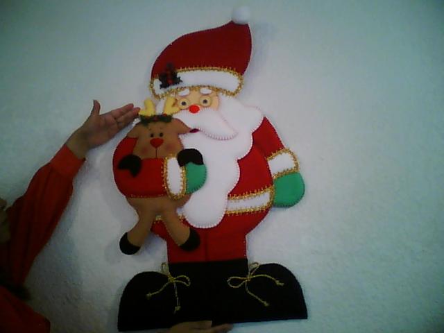 Polar, fieltro, galón, hilo dorado, pick y delcrón. Mide 70 cms de alto. Esta pieza requiere de bastante relleno, por lo que pesa y para darle soporte se requiere de una base plana para el cuerpo, ela ...