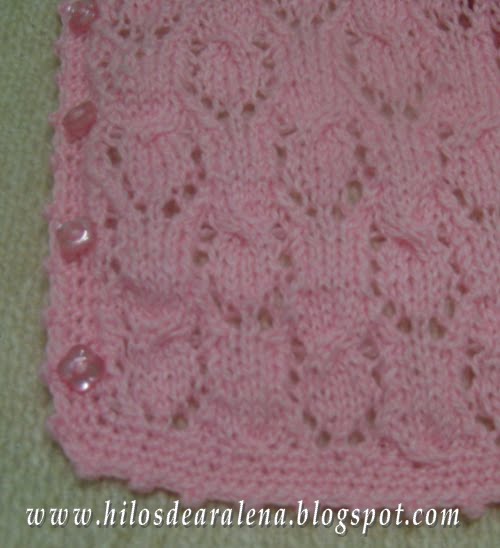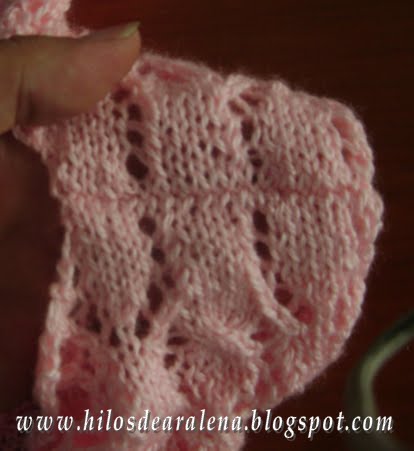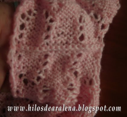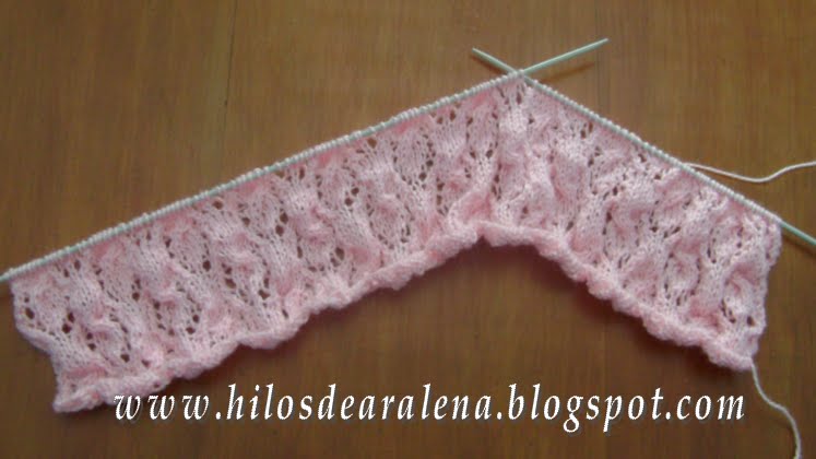 Comenzamos levantando 117 puntos en aguja Nº3. Tejemos entre los puntos de orilla a punto calado, empezando en C ( ver el diagrama).