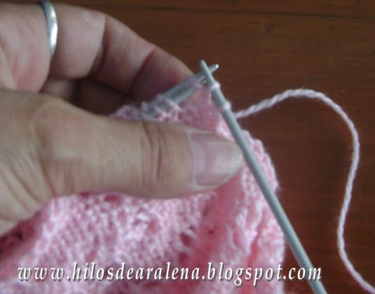 Tejer 2 cm mas y dejar los puntos en espera en una aguja auxiliar.