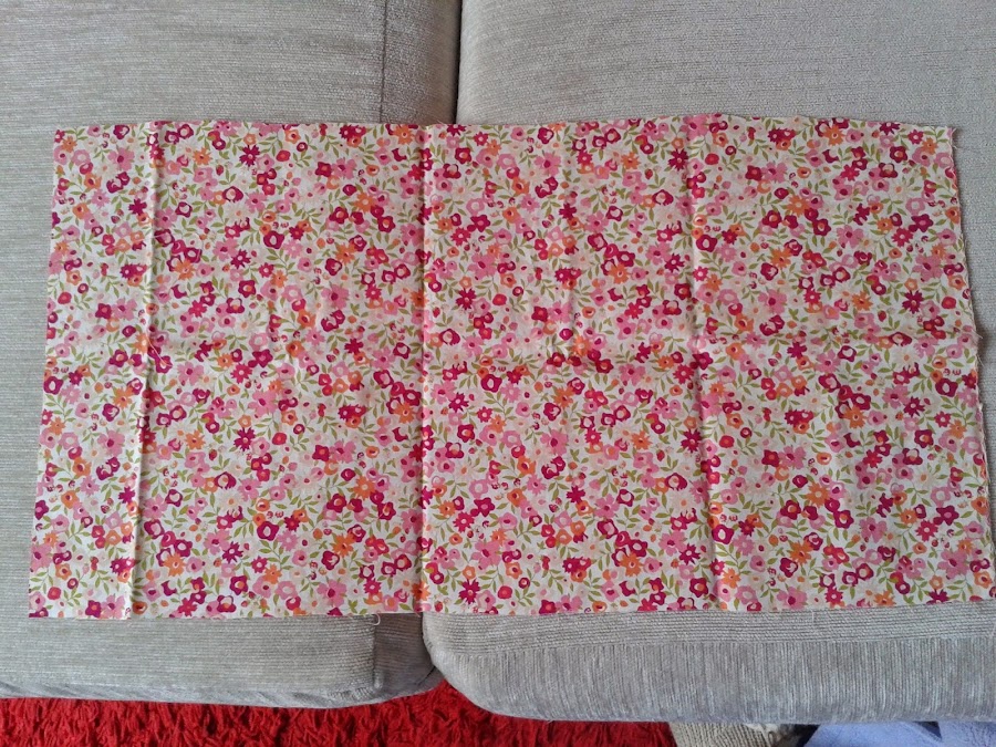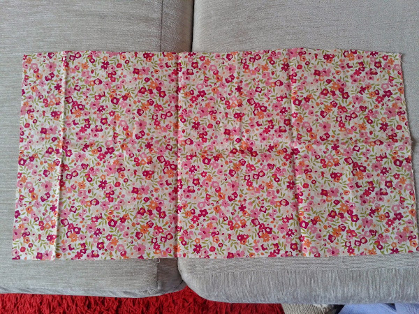 Cortamos un trozo de tela de 45 x 30 cm., lo doblamos a lo largo y cosemos el lado largo y uno de los cortos por el revés para dejarlo como un saco.