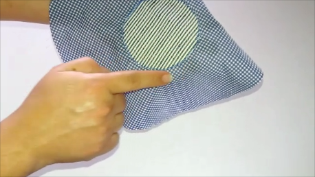Preparadas las telas vamos a tomar la que destinaremos como tela exterior y la vamos a doblar por la mitad para marcar el centro; lo mismo haremos con la base que luego pondremos en la línea que hemos marcado, de esta forma: