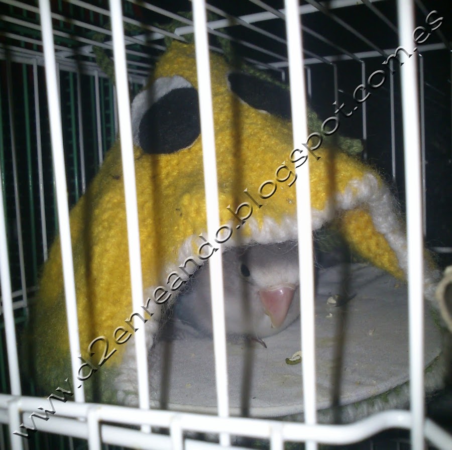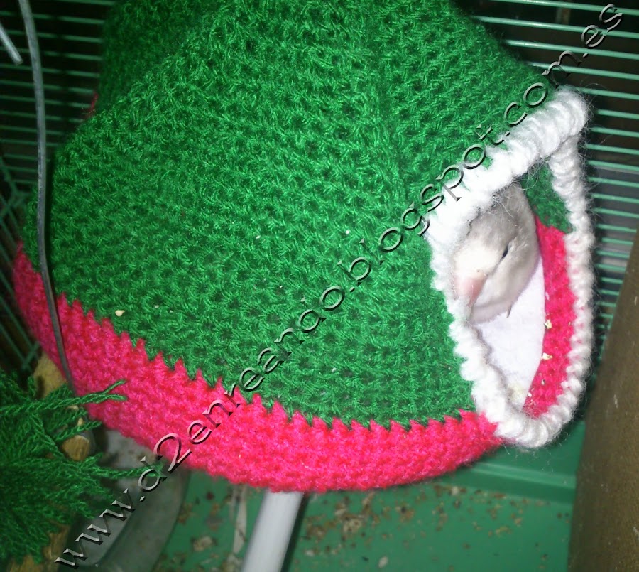 Esta vez os presentamos algo hecho para pajaritos, estos en particular para agapornis, aunque también sirve para otro tipo de pájaros, como ninfas. A pesar de que a unos les ha costado más que a otros ...