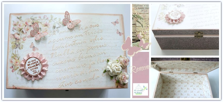 Siempre he pensado que cuando un ser querido nos deja, el tiempo hace que la pena se transforme en recuerdo y si lo mantenemos vivo ellos nunca nos abandonan.Y todo esto me llevó al regalo de su cumpleaños, una caja para guardar esas "pequeñas" cosas que tienen un "gran" valor en nuestro corazón.