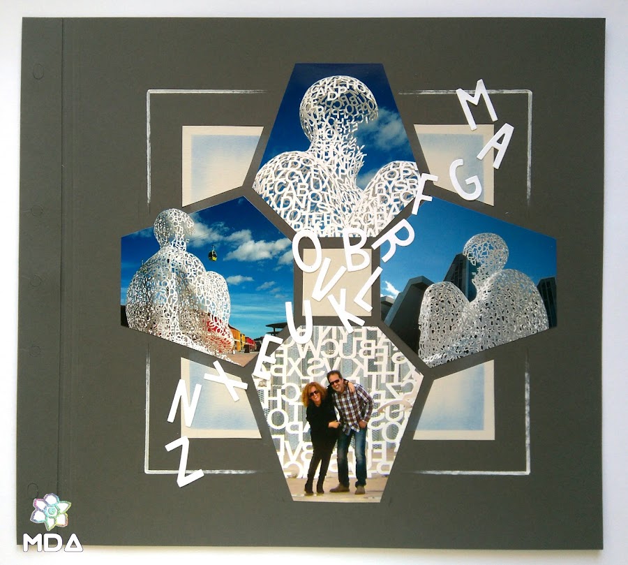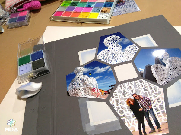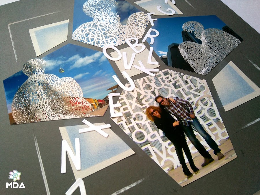 La experiencia me gusto mucho y el estilo va mucho conmigo, una manera de scrappear en el que la fotografía es la protagonista. Utilizamos materiales de AZZA y fuimos dirigidas por Ana Laiglesia, técnico en Imagen y Sonido, fotógrafa profesional y monitora de esta marca en España