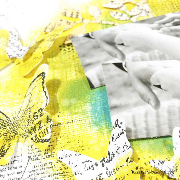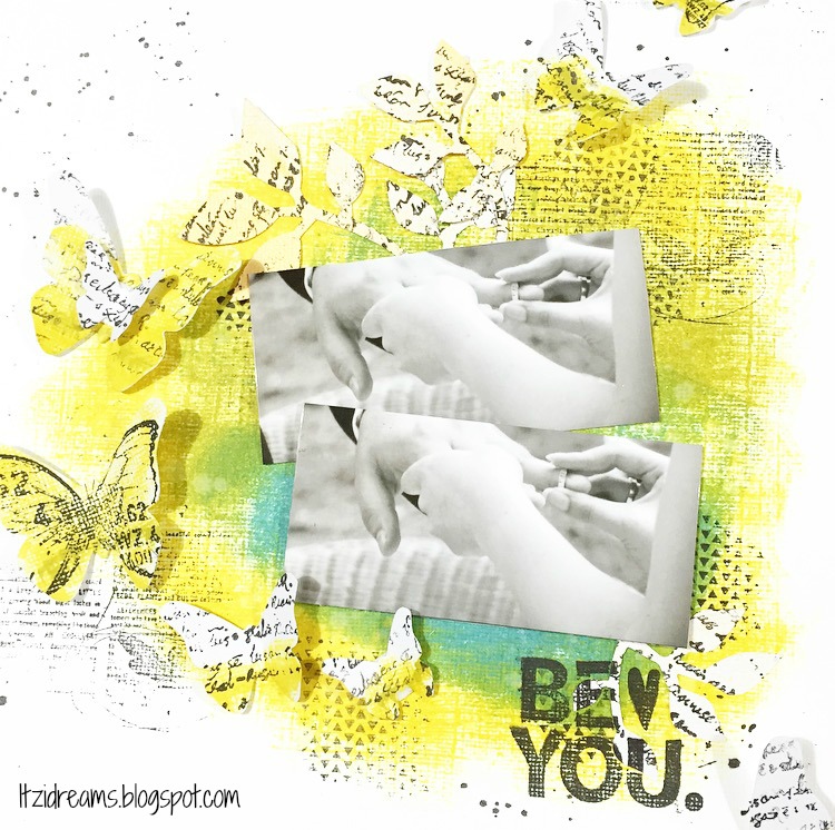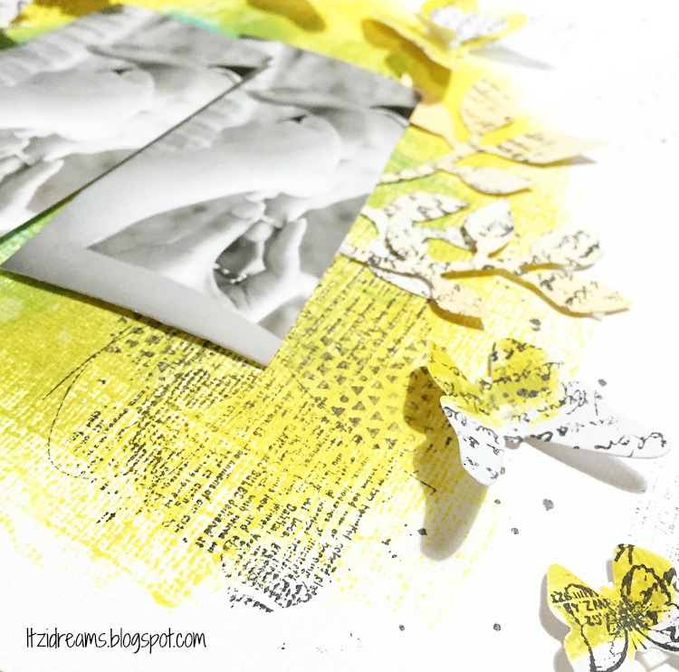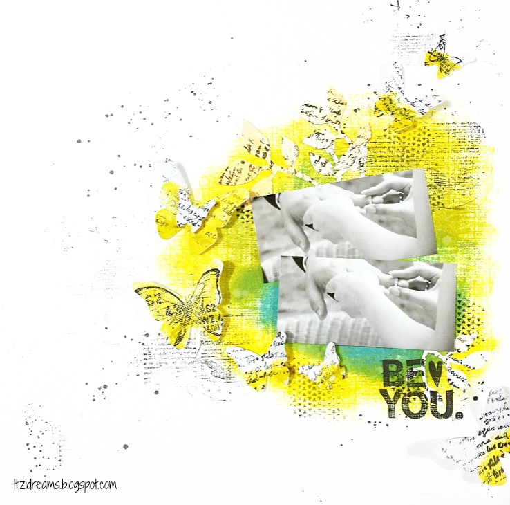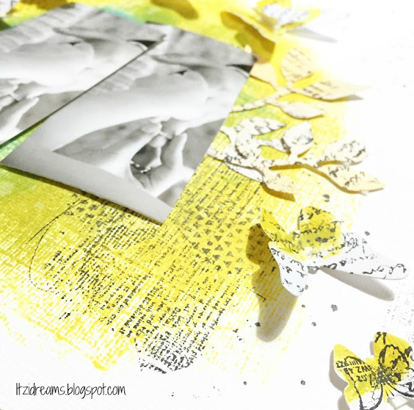 Buenos días!! Hoy os traigo mi interpretación al reto de febrero de Up and Scrap, esta vez el requisito tintas y sellos. Par este reto he preparado un LO, porque me encantan. Para la base he usado un básico blanco y con diferentes colores distress he creado un fondo aguado de tonalidades suaves.