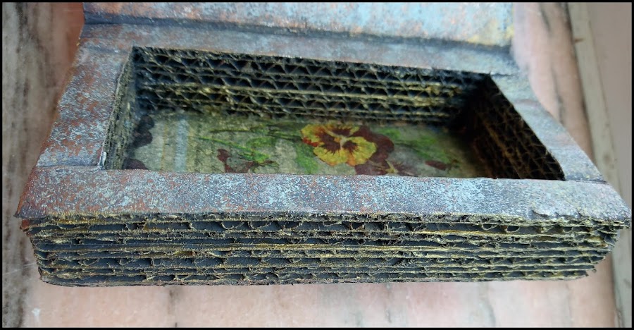 Se me ocurrió aprovechar un trozo de cartón corrugado grueso que tenia y lo primero que hice fue darle forma con el cutter haciendo una especie de cuadro.