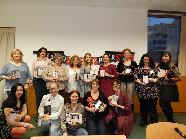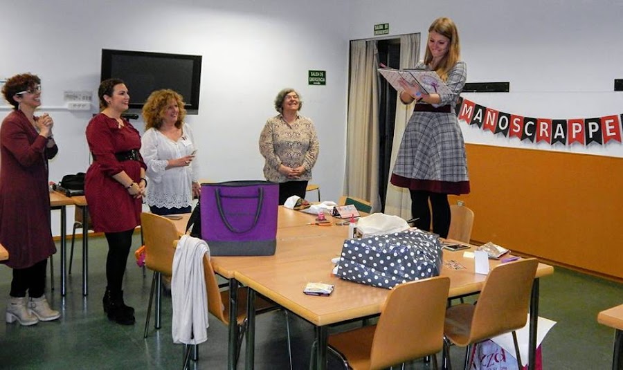 Las participantes le regalamos un álbum que habíamos hecho entre todas, cada una una página y quedó precioso, lo titulamos "Alicia en el país de la Escraperas".