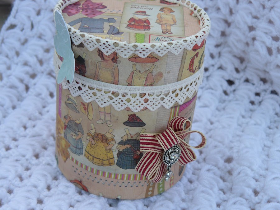 Esta primera caja se la hice a mi sobri , cuando vió el papel de las muñecas antiguas le encantó , en un principio le iba a hacer un malma pero de malma se quedó en caja. A ella le ha gustado mucho