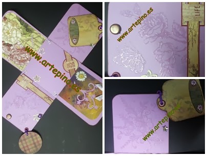 Tercera capa, los detalles de la cuarta foto que se ven en transparente están hechos con sellos de silicona y la técnica del embossing: