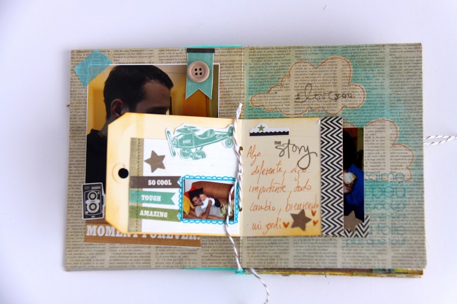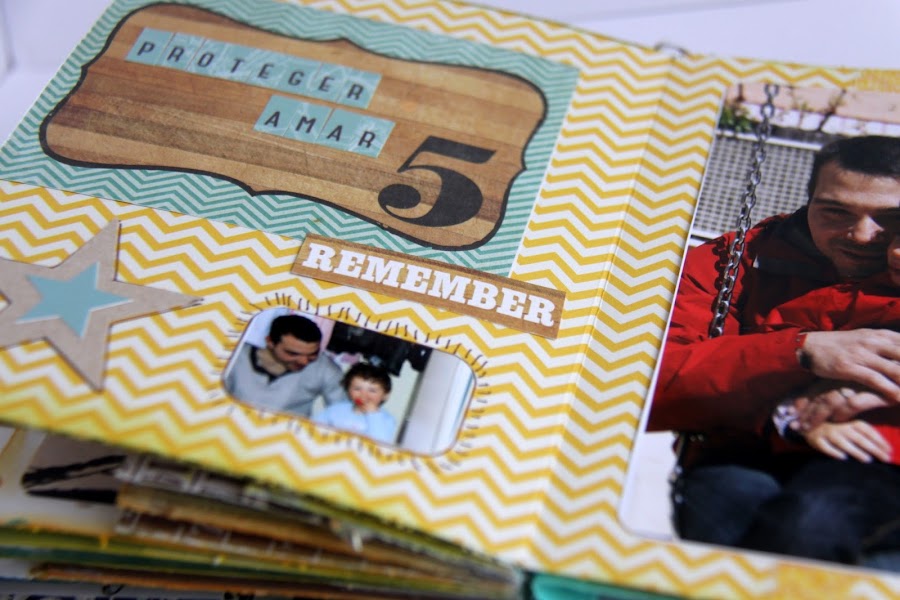 La verdad que este mini ha sido todo un reto para mí, por la cantidad de detalles, por los distintos tamaños de hoja y por el tipo de papel (tonos más oscuros de los que suelo utilizar). Pero estoy muy contenta del resultado, y a los destinatarios (mis chicos) les ha encantado ¡eso era lo importante!
