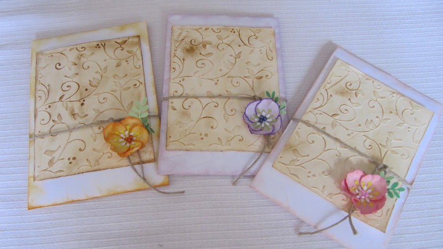 Unos son más sencillos otros más elaborados, utilizando prácticamente de todo, como polvos de embosar, sellos, troqueles, trocitos de papel, cintas, placas de embosar…