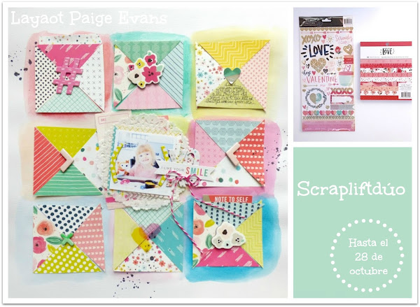 En esta ocasión es Mireia la que hace la propuesta, que consiste en scrapfliftear este LO de Paige Evans y convertirlo en una tarjeta. Este mes el premio son unos stickers y papeles de lo más amorosos.