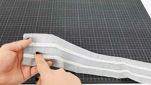 Damos la vuelta, planchamos y marcamos dos líneas en el centro de nuestra pieza de tela.