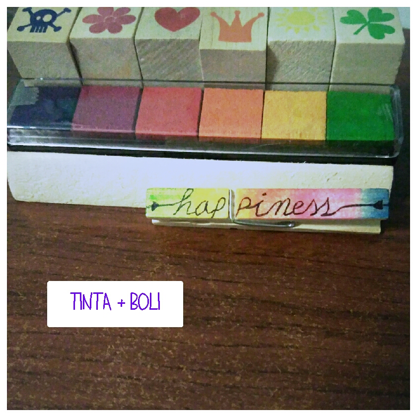 MÉTODO 3.> Mi favorito! Es muy fácil y que queda super bonito. Sólo necesitas tinta, del color que eligas y estampala en tu pinza. Déjala secar y si quieres puedes añadir una frase, palabra, letra, símbolo... todo lo que te se ocurra.