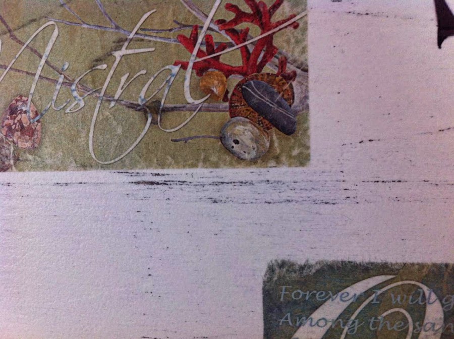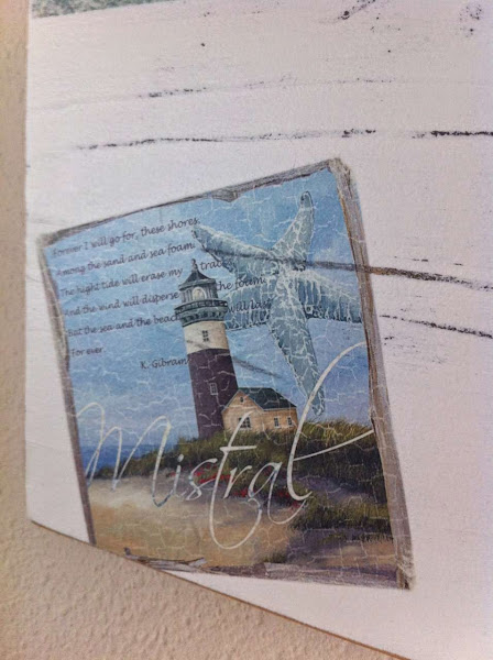 Las letras las hice con la técnica de la transferencia utilizando un producto que se llama Photo Transfer. No estoy yo muy contenta porque amarillea un pelín, y como soy tan culijusta, me pongo de los nervios si se nota...Tengo pendiente hacer la prueba con Mod Podge, a ver si me gusta más.