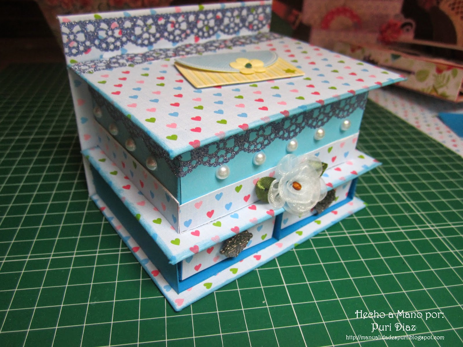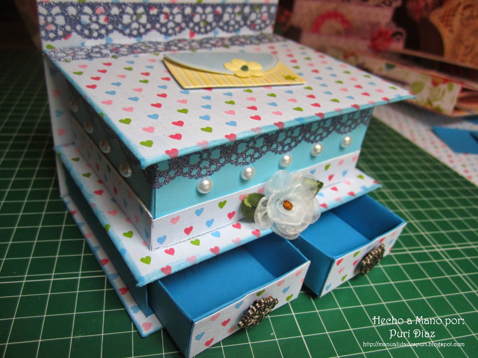 Una preciosa cajita con cajones, realizada toda artesanalmente...yo la uso como joyero pero tiene múltiples usos...otro taller del grupo de scrap para principiantes impartido esta vez por Maribel Fernández Morales...precioso proyecto que podemos decorar a nuestro gusto y haciendo juego acorde con el lugar donde vaya a estar ubicado...¿que os parece?