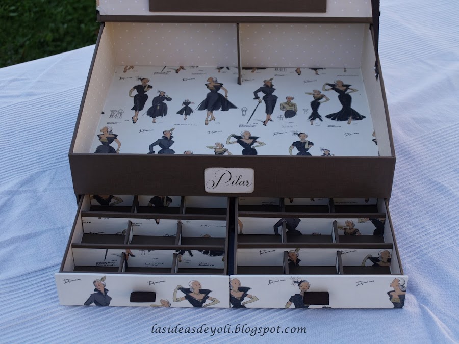 Ella tenía claro como quería la distribución interior, una parte para los pendientes sueltos y otra totalmente abierta para las cajitas.