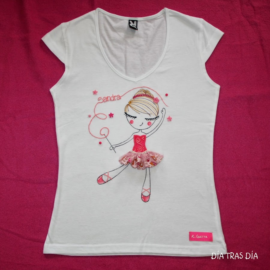 Así fue como Maribel se puso en contacto conmigo para pedirme unas camisetas de Ro-ro bailarina y Ro-ro gimnasta para sus peques gemelas, Miriam y Laura. Y este fue el resultado: