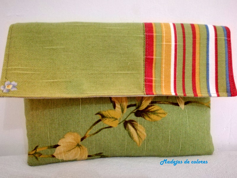 Esta tela es preciosa, muy primaveral, con unos colores bien alegres. Con cremallera y borlón.