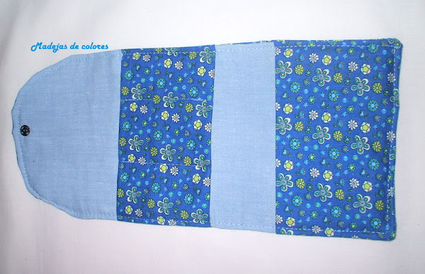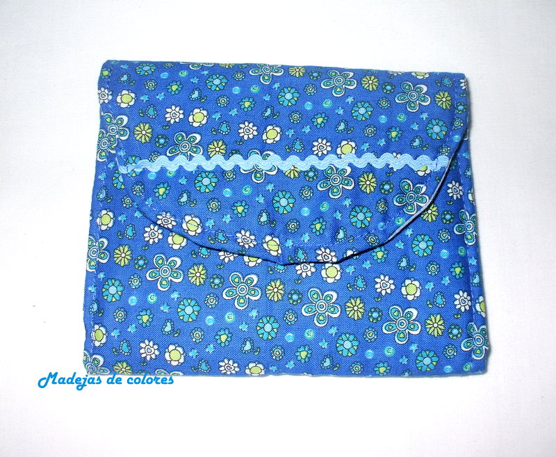 Otro con fondo azulón y florecillas en blanco y amarillo, de adorno otra piculina.