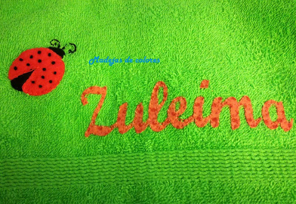 Una toalla personalizada para una niña que le encanta las mariquitas.